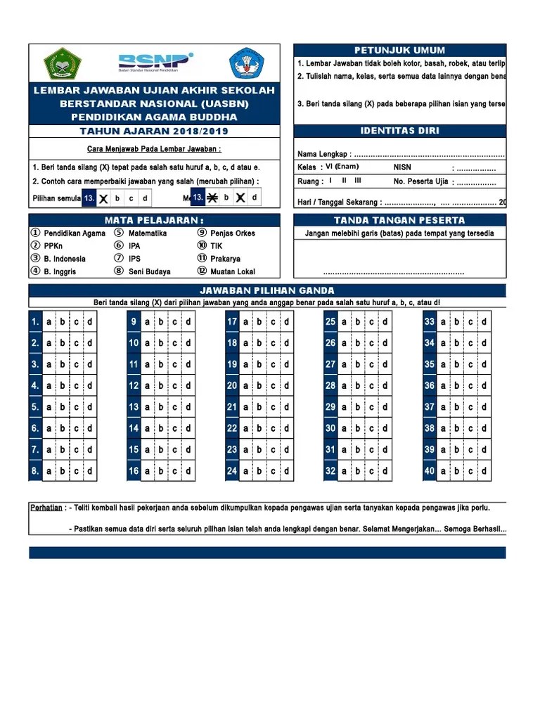Download lembar jawaban ujian, contoh lembar jawaban k13 sd, contoh lembar. Lembar jawaban ujian semester sd mi. Download lembar jawaban ujian pilihan ganda, contoh lembar . D i n as pe n d i d i k an ulangan kenaikkan kelas (ukk) tahun pelajaran 2012/2013. Untuk mempermudah mengoreksi jawaban pada lembar jawab biasanya digunakan dua cara:.